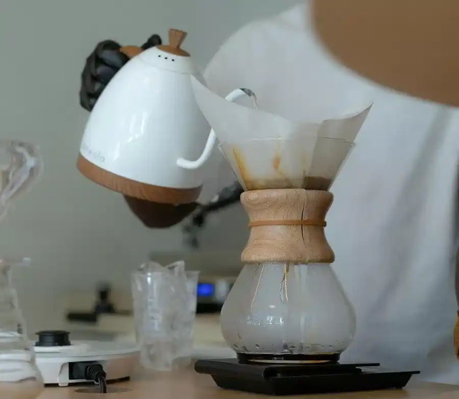 Chemex – це скляний пристрій для фільтрованої кави, який поєднує естетику та функціональність. Товсті паперові фільтри затримують олії та дрібні частинки, створюючи чисту та легку каву. У чашці результат виходить делікатним, з виразним акцентом на солодкість і аромат.