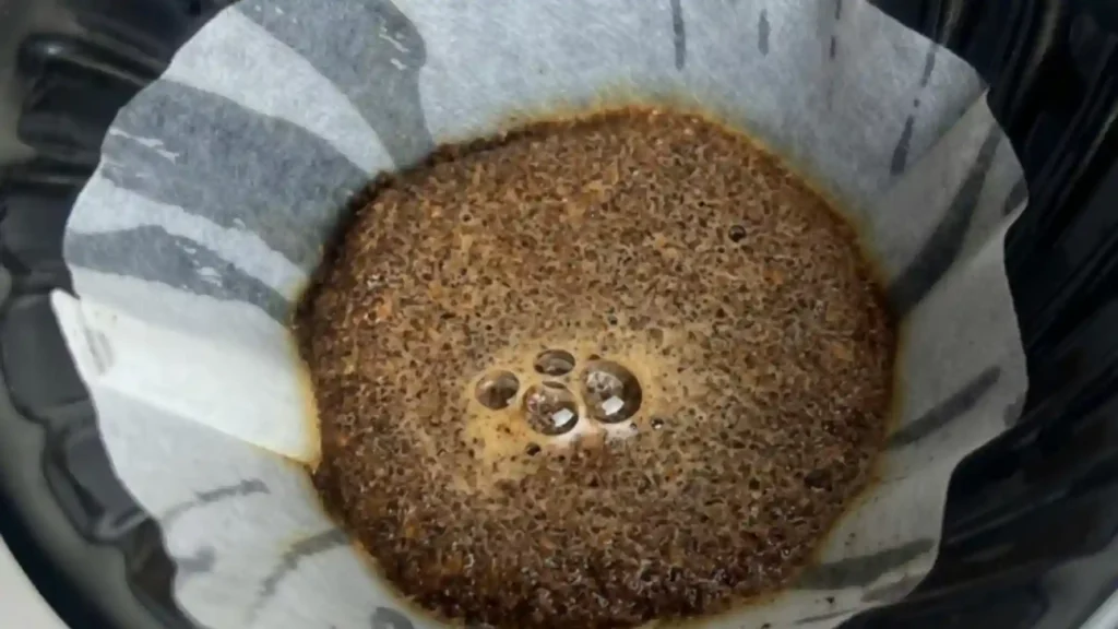Freshly roasted coffee (2-7 days) shows rapid degassing with active bubble formation. Coffee aged 1-2 weeks shows moderate “blooming”. Older coffee (more than a month old) may not respond to pre-wetting at all, indicating a loss of CO2.