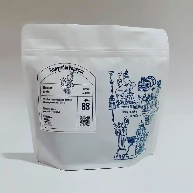 Витончена спешелті кава з регіону Popayán (Колумбія), що вирізняється яскравим ароматичним профілем і чистотою смаку. Зерно різновиду Geisha, вирощене на висоті 1900 м, формує елегантну кислотність та високу солодкість чашки. Завдяки анаеробній ферментації смак набуває глибини та багатошаровості. У напої розкриваються ноти жасмину, стиглого манго та рожевого грейпфрута, які створюють свіжий, квітково-фруктовий характер. Обсмажування під фільтр підкреслює прозорість профілю та тривалий, чистий післясмак. Оцінка 88 балів SCA підтверджує високу якість і спешелті рівень кави.