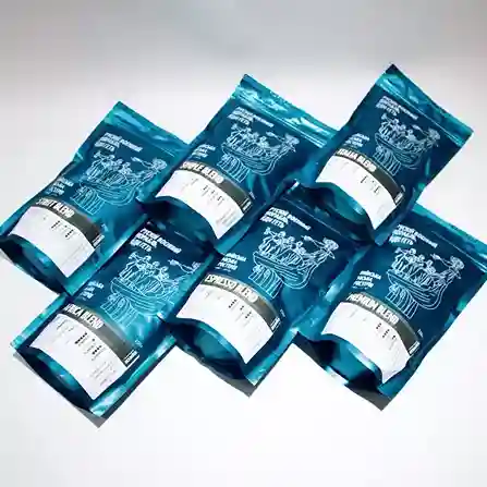 В наборі представлені всі шість сортів наших купажів з робустою у фасовці по 250 г: