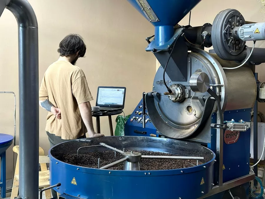 На данный момент наше производство расположено в пригороде Киева, в просторном помещении, разделенном на зоны для обжарки, фасовки и упаковки. Все организовано так, чтобы путь кофе — от зеленого зерна до герметичного пакета — был логичным и последовательным.